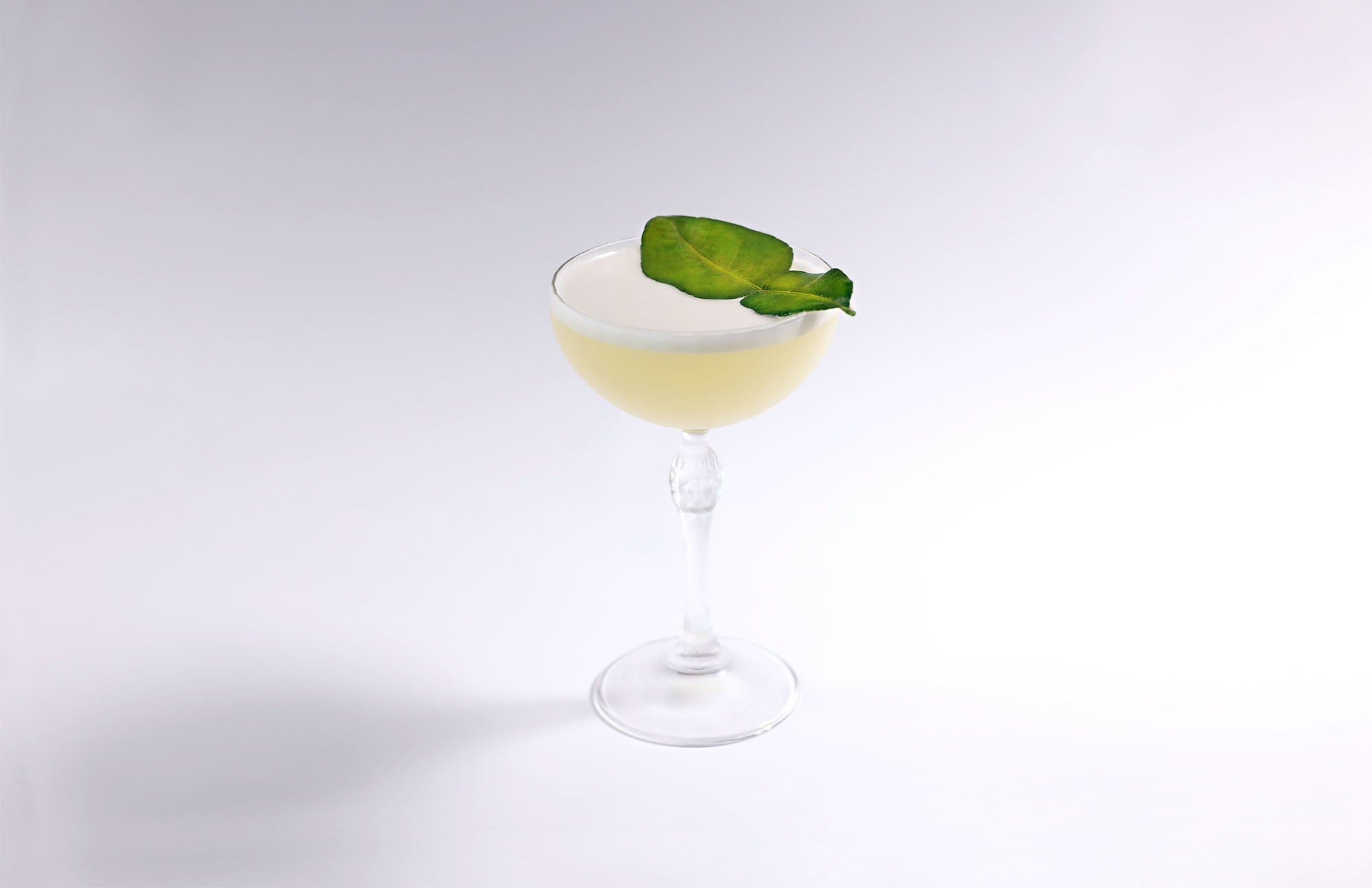 Add all ingredients to shaker, double strain into chilled martini, garnish with kaffir lime pegged.