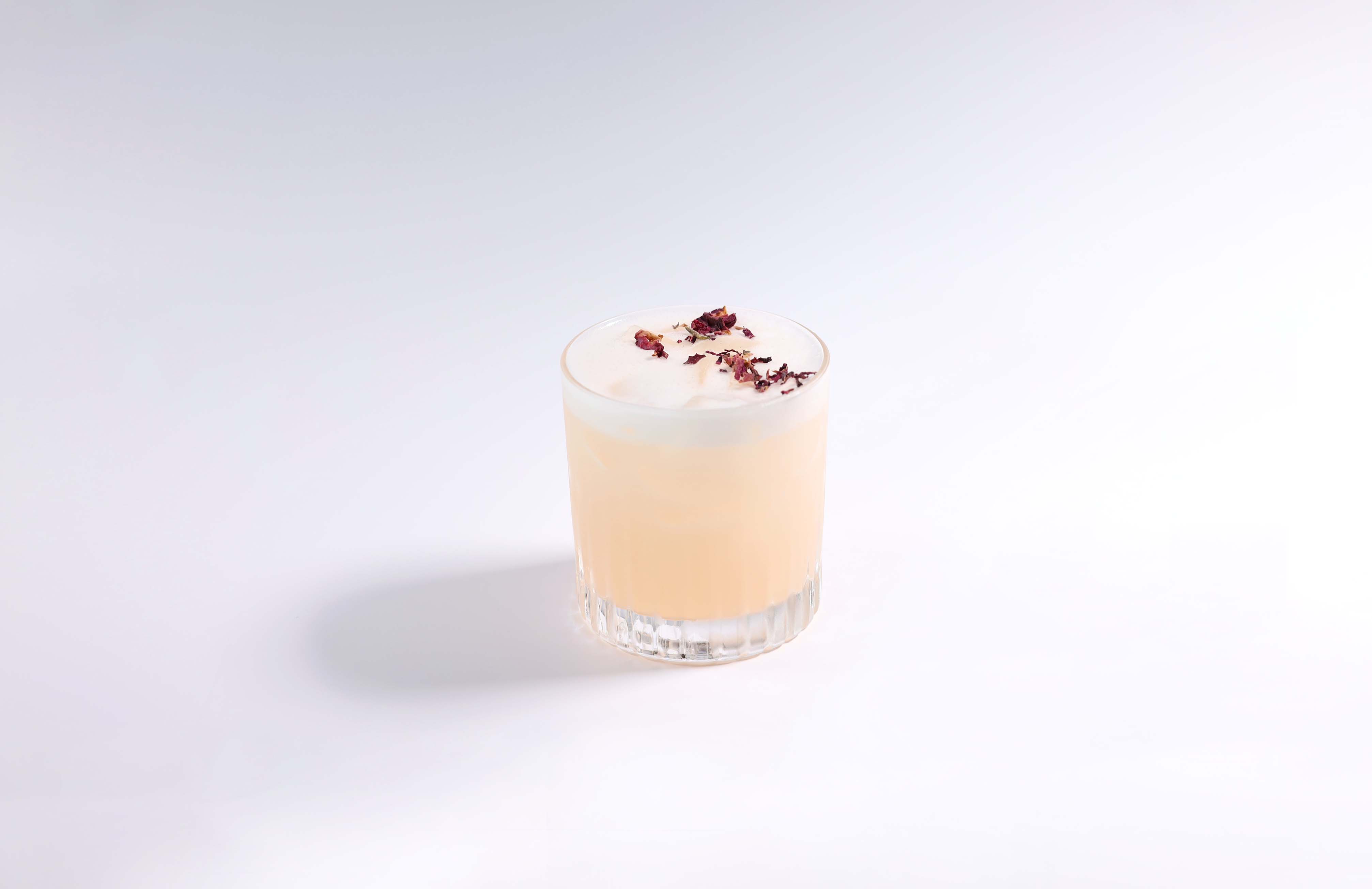 Add all ingredients to shaker, dry and wet shake, strain over cocktail ice in double old fashioned glass, garnish with edible flowers and pink pataya powder.